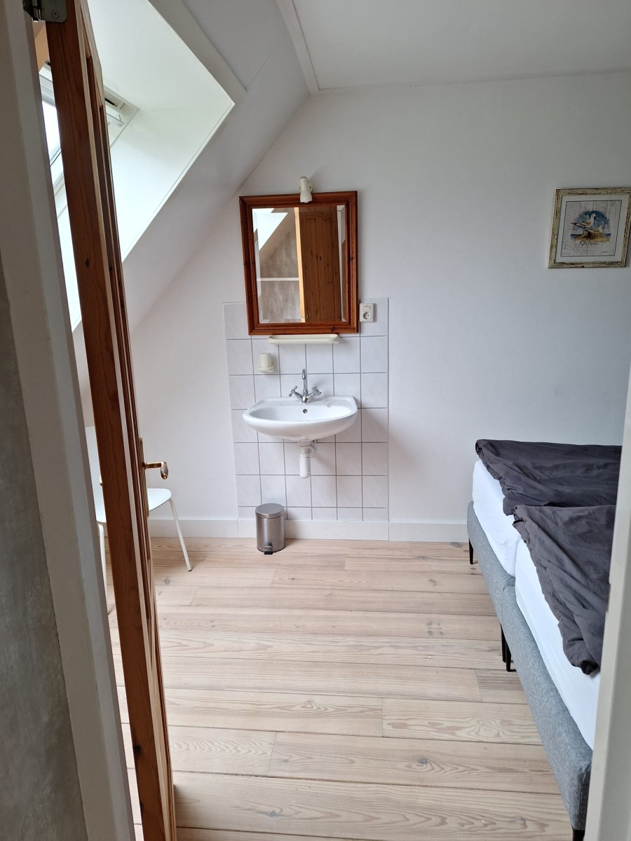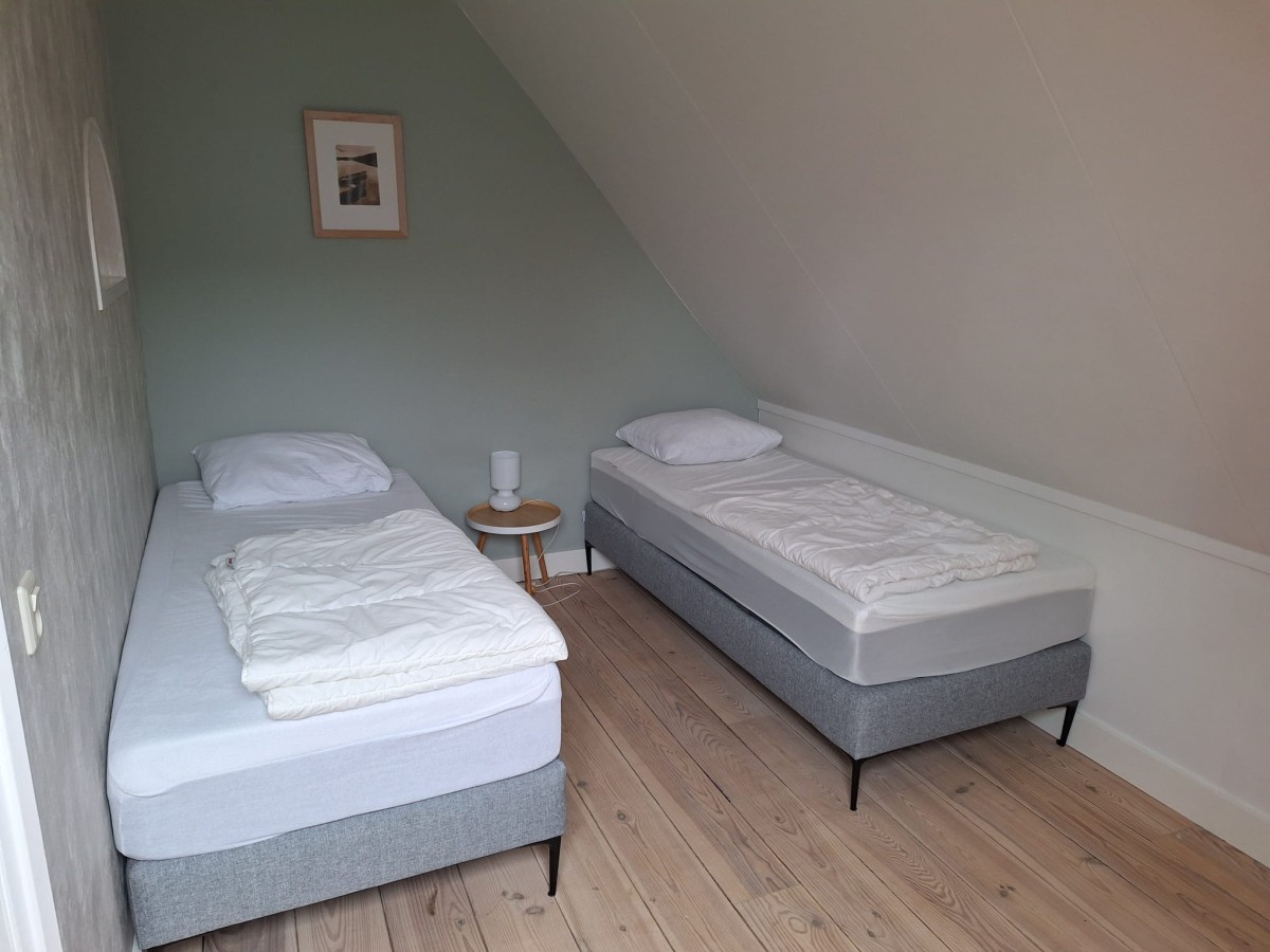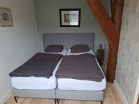 Op de bovenverdieping zijn twee slaapkamers; beide slaapkamers hebben twee eenpersoonsbedden (90 x 200) en één van de slaapkamers beschikt over een wastafel. Er is ook een campingbadje aanwezig.